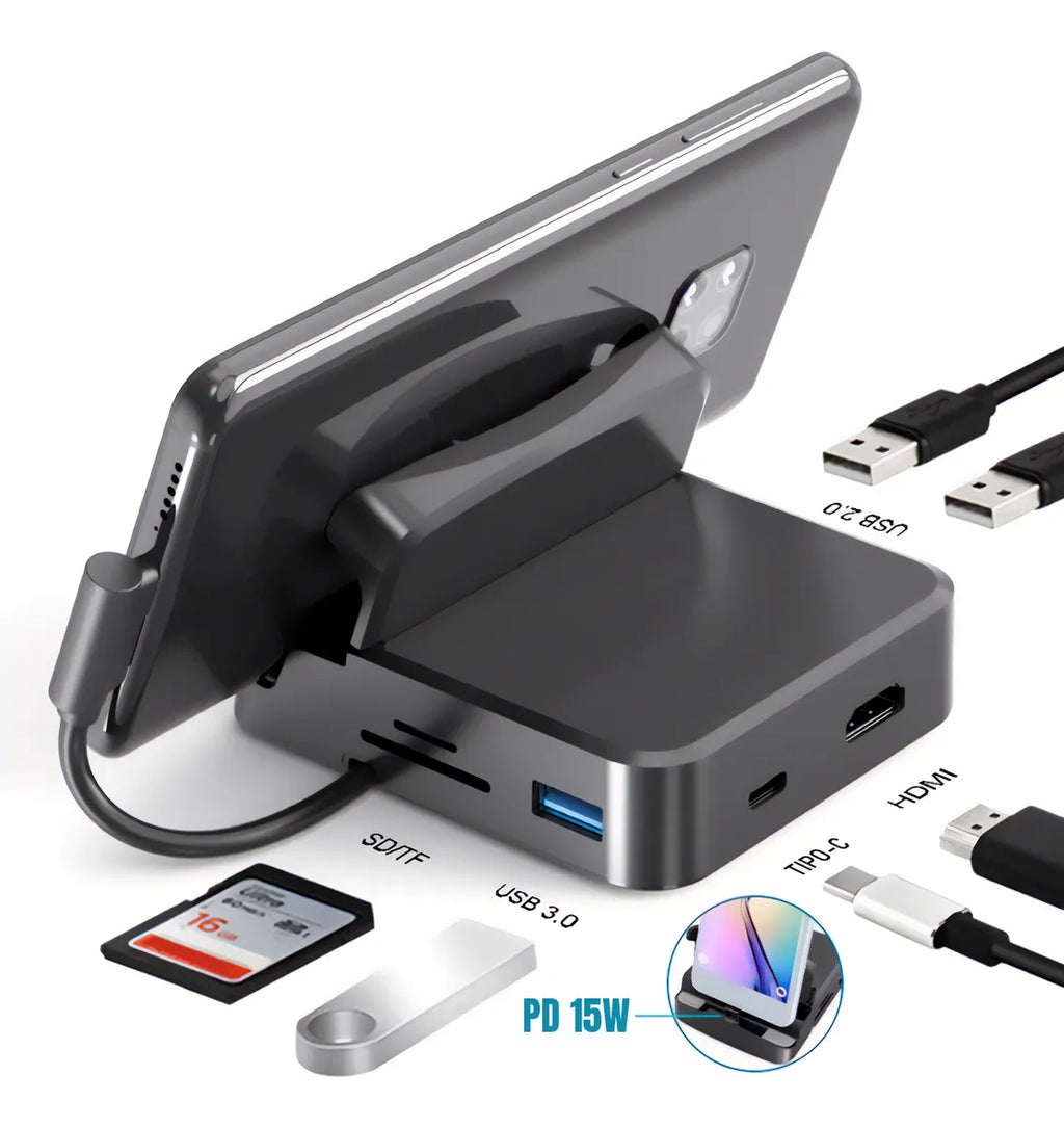 Projetado para mobilidade e desempenho, este adaptador compacto pesa apenas **80g** e oferece tudo que você precisa para produtividade: uma porta **HDMI 4K** para telas grandes, carregamento rápido e slots para todos os seus periféricos e mídias.