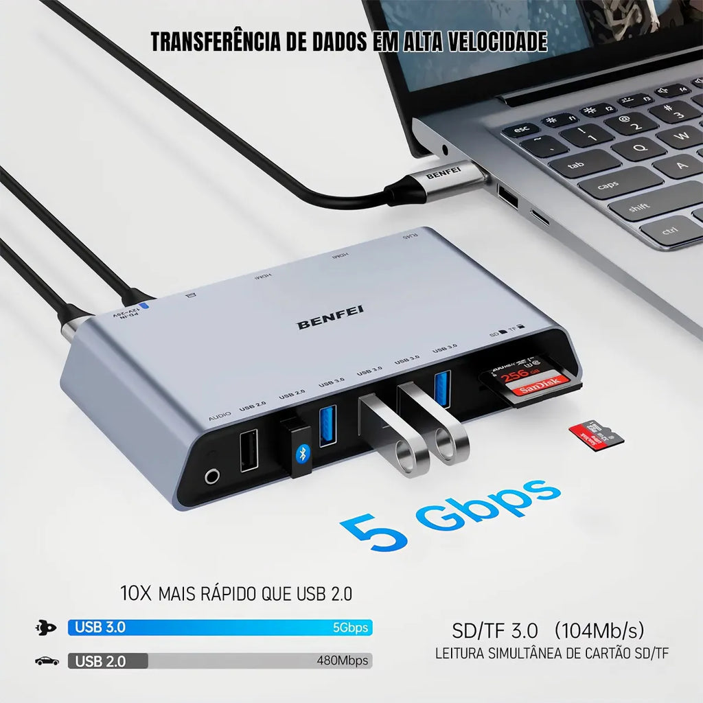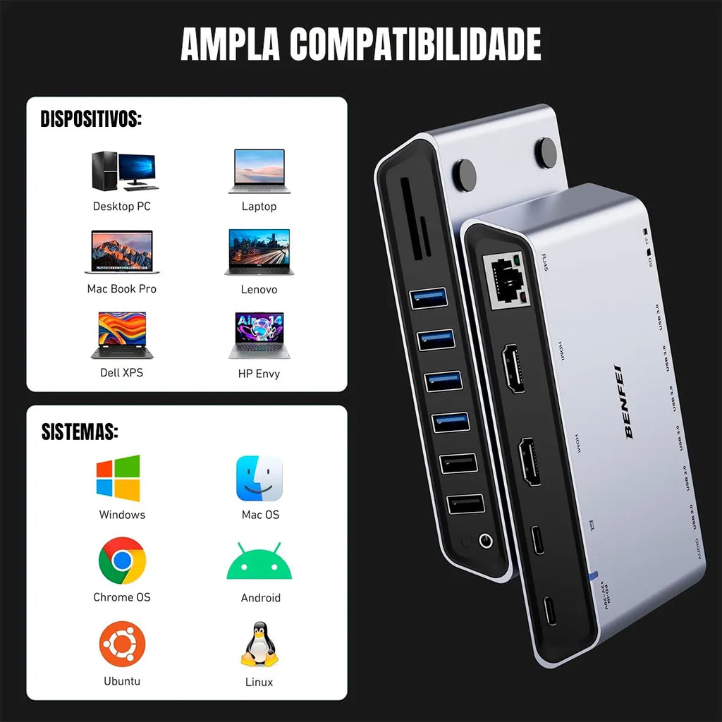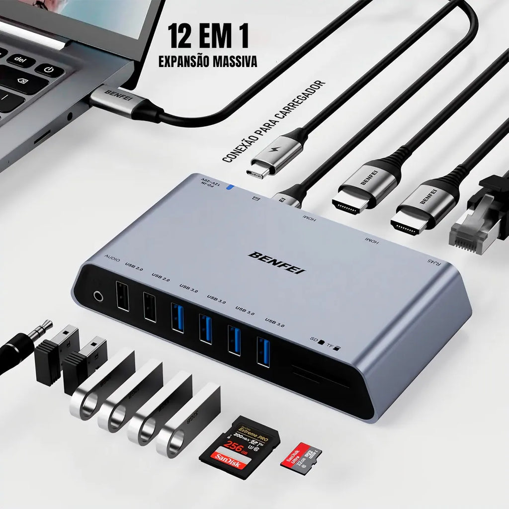 Dorn: Docking Station DisplayLink 12 em 1 - Duas HDMI, Gigabit Ethernet e PD 45W