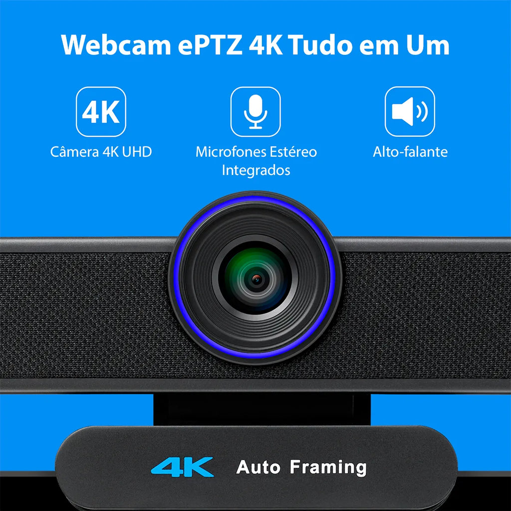 Equipada com o renomado Sensor FX815, esta webcam garante resolução 4K Ultra HD e imagens nítidas com foco impecável. O grande diferencial é a tecnologia de Rastreamento Automático por Inteligência Artificial (IA), que mantém o palestrante sempre enquadrado, sem necessidade de ajustes manuais.