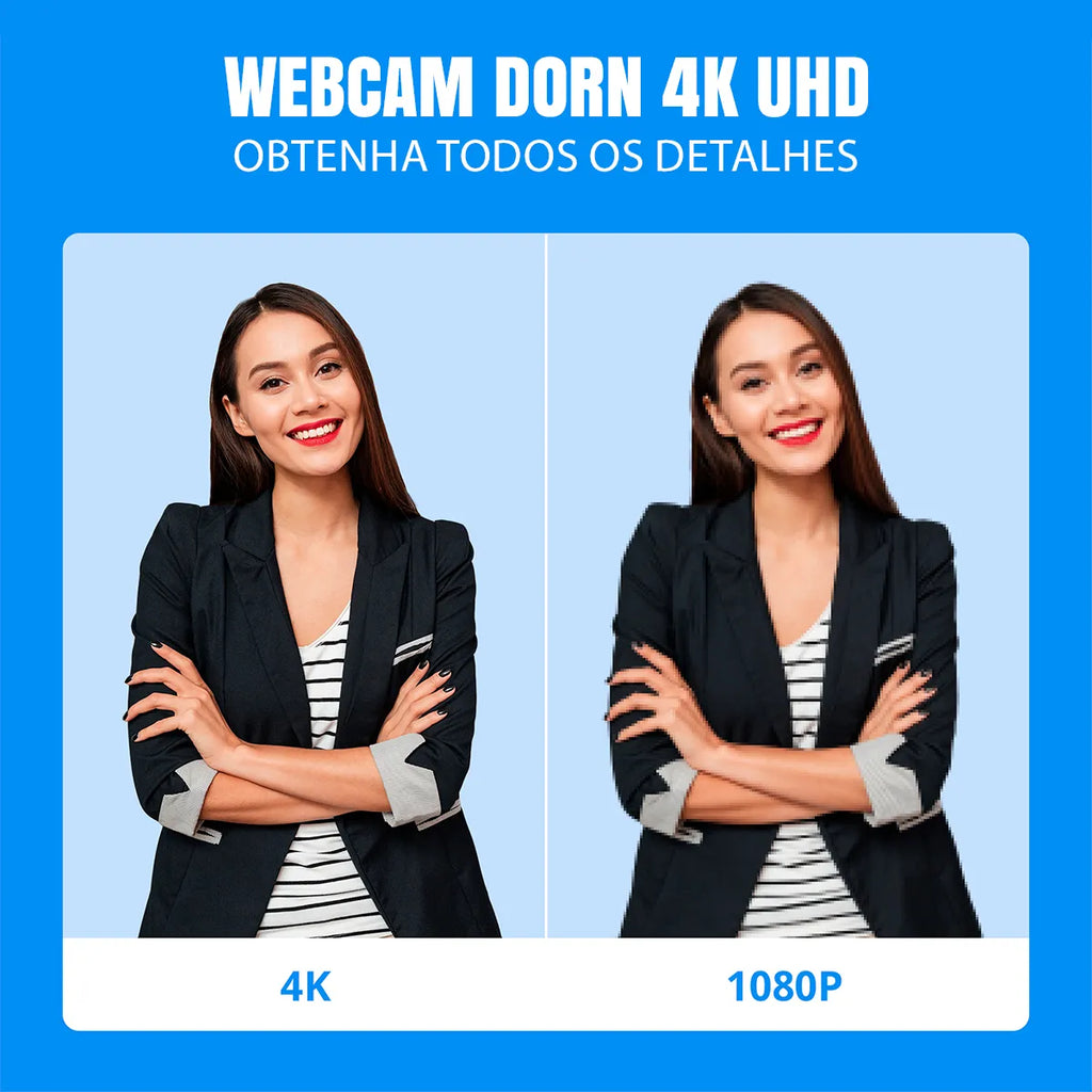 A Webcam Dorn 4K Ultra HD é a escolha perfeita, combinando inteligência artificial e controle total na palma da sua mão.