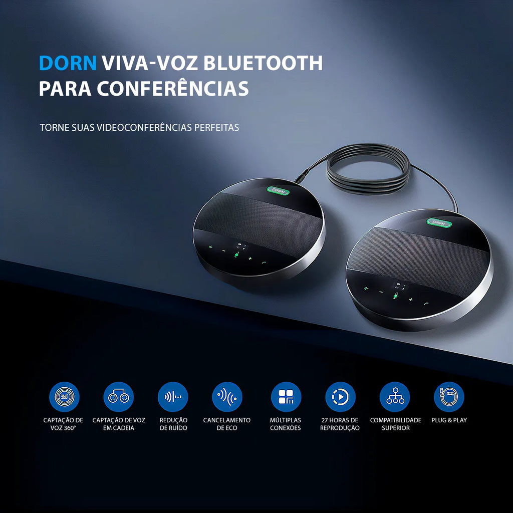 O Sistema de Conferência de Áudio Dorn foi desenvolvido para reuniões de alto nível com até 35 participantes, oferecendo captação de voz em 360° e um impressionante alcance de até 12 metros. Equipado com 8 microfones profissionais, redução de ruído avançada, áudio full duplex e suporte total às principais plataformas de videoconferência, ele garante comunicação nítida mesmo em salas amplas.