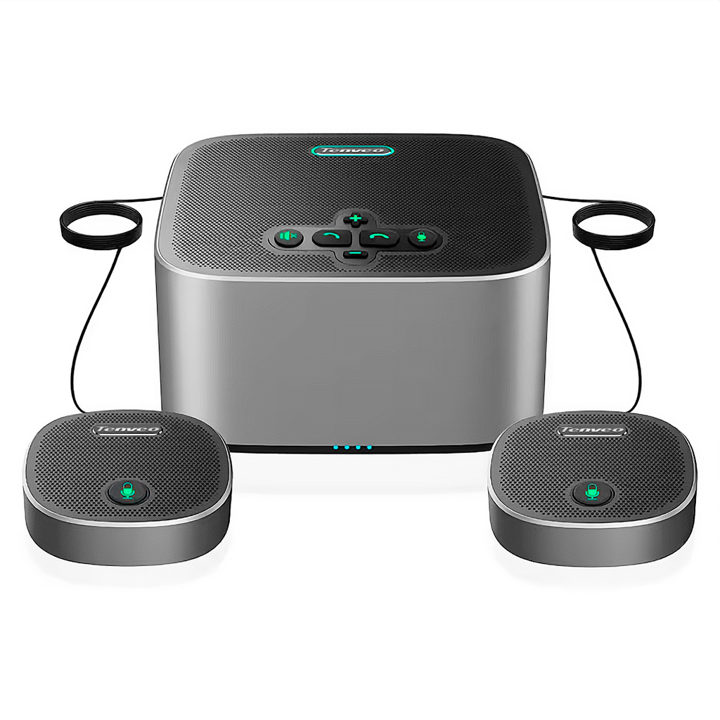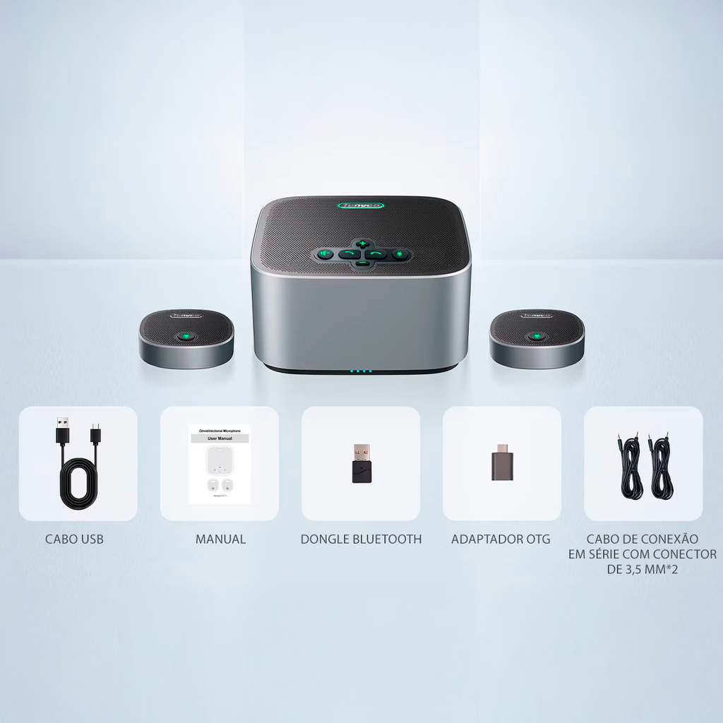 O Sistema de Conferência de Áudio Tenveo M4PRO entrega captação de voz em 360°, tecnologia avançada de redução de ruído e áudio full duplex para chamadas de vídeo mais naturais. Ideal para salas de até 40m², este sistema atende até 25 participantes com precisão, e ainda permite adicionar 2 microfones de expansão para ampliar o alcance quando necessário.