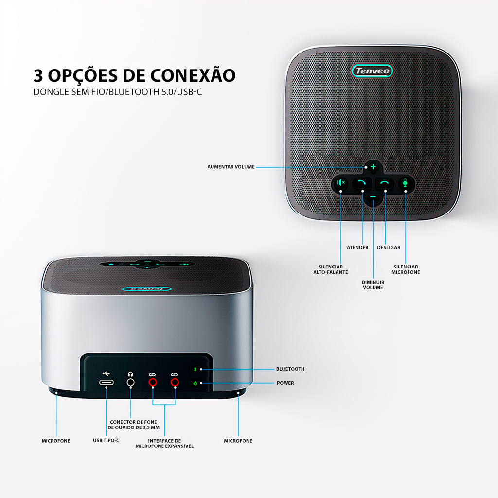 - Tecnologia: Sensibilidade -38 dBFS, Redução de ruído, Full Duplex e AEC (Cancelamento de Eco)