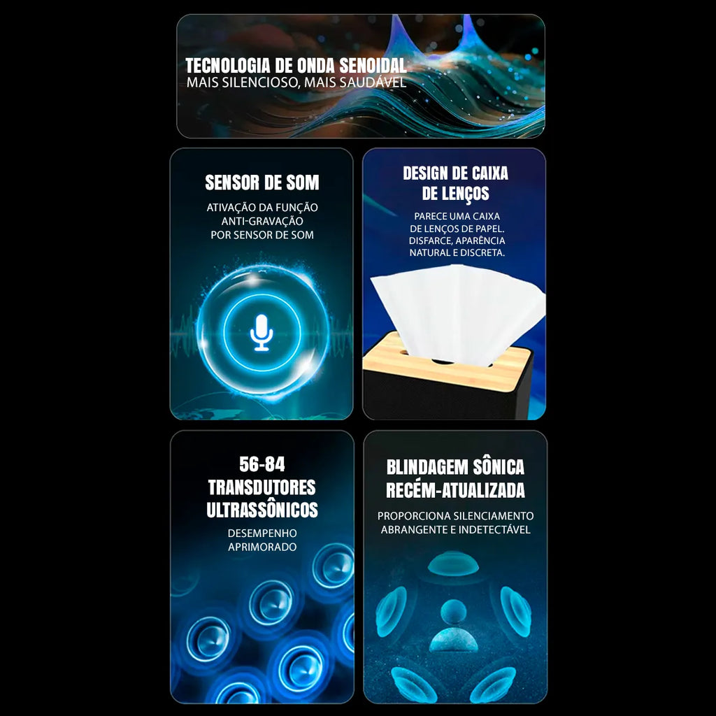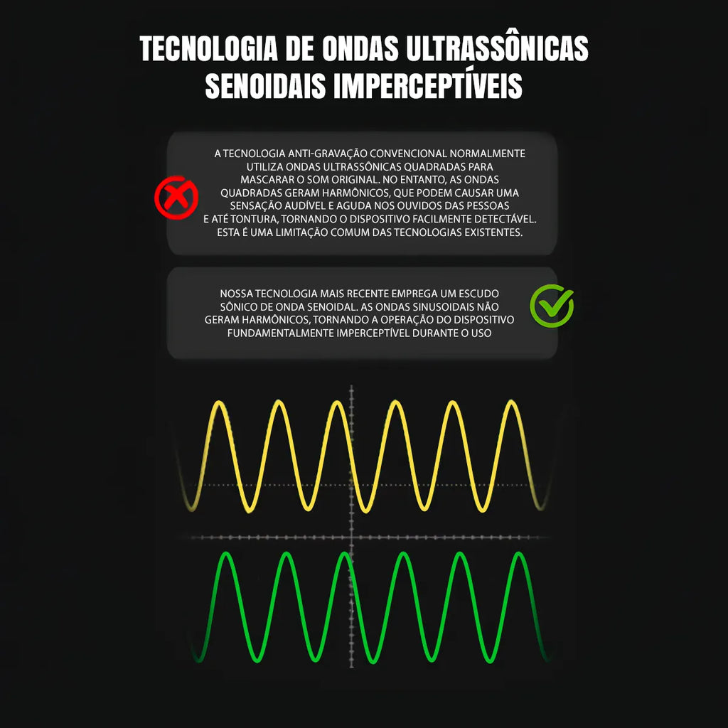 Proteção real contra gravações, oferecendo mais segurança em reuniões corporativas, negociações, consultorias e ambientes onde a privacidade é essencial.
