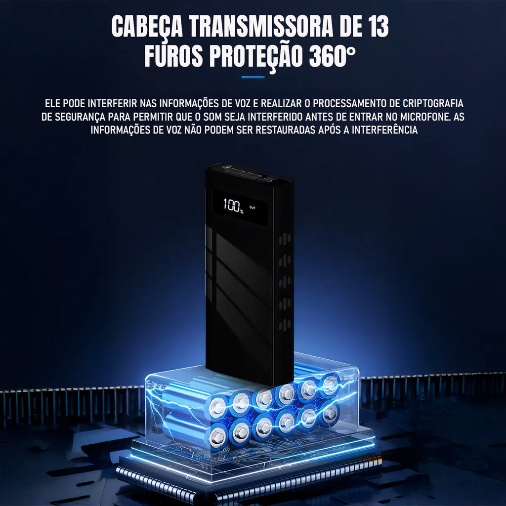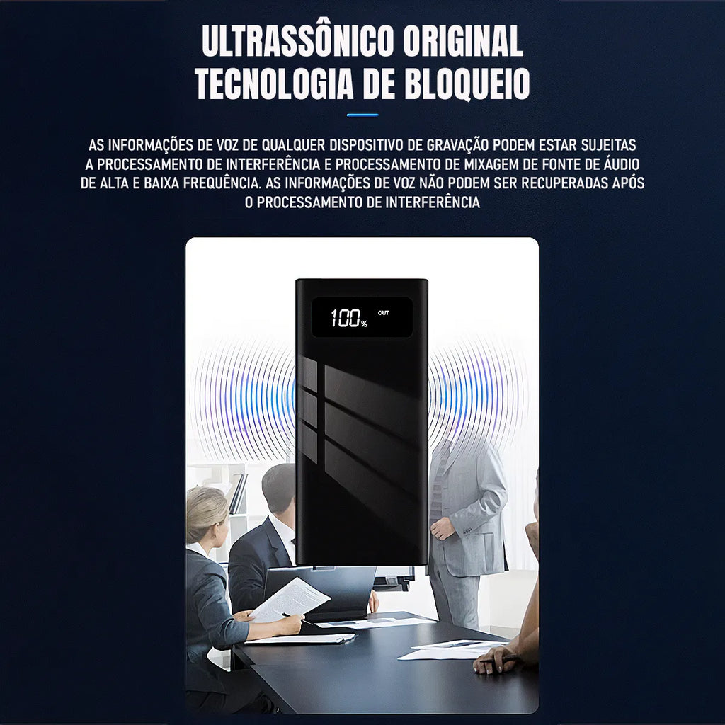Em reuniões, negociações ou ambientes corporativos, a privacidade é essencial. O Bloqueador Ultrassônico de Gravação com Controle Remoto DORN garante segurança sonora com tecnologia avançada, impedindo gravações não autorizadas de forma portátil, discreta e eficaz.