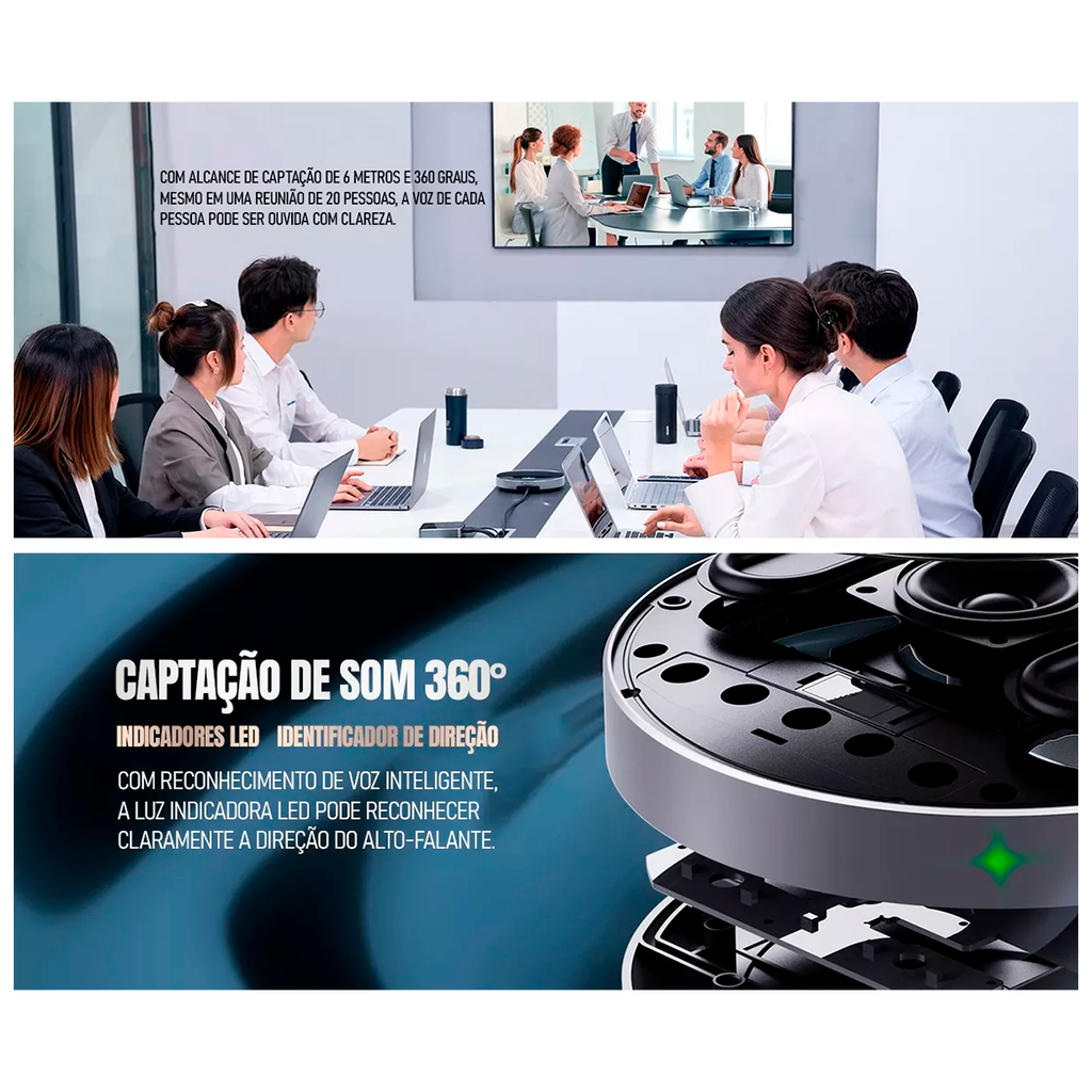 - Alcance: Captação de áudio de 6 metros
