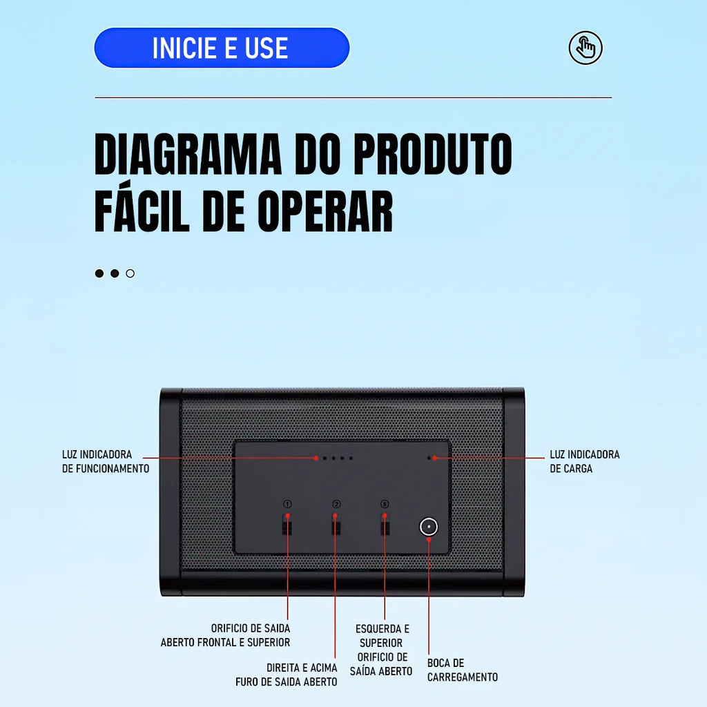 Portátil e discreto: design silencioso em ABS resistente, ideal para uso em qualquer ambiente