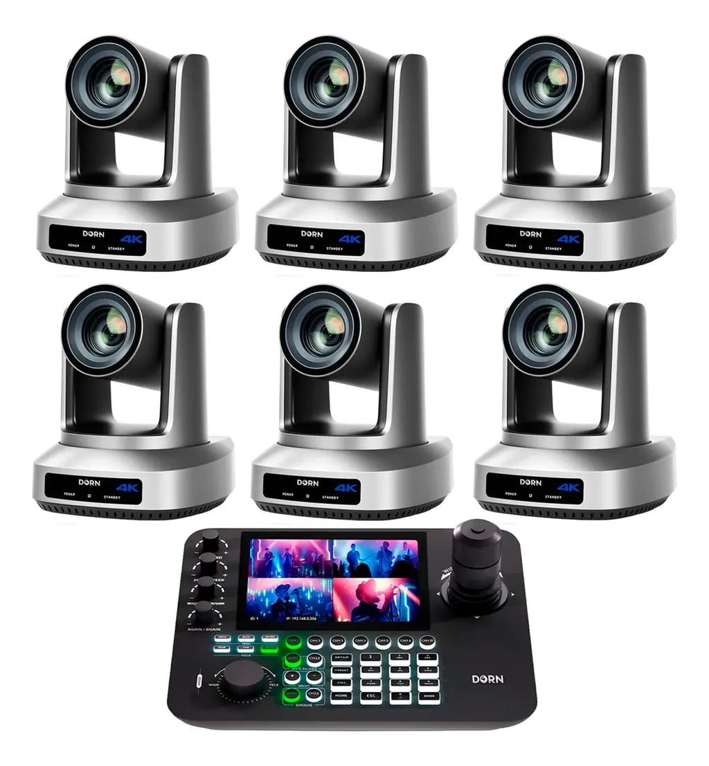 - 6x Câmera Profissional Dorn 20XU MAX (4K@60fps, Auto-Tracking IA, NDI®|HX2, SDI/HDMI/USB)