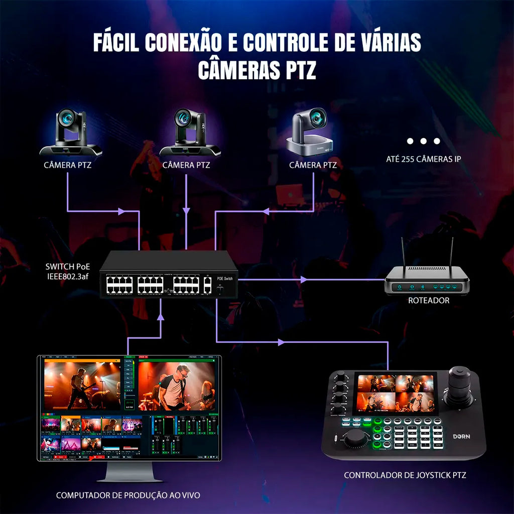 - 1x Controladora Dorn PTZIP-N Multiview com Joystick 4D